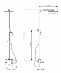 - Форма верхнего душа: квадратная