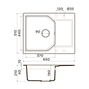 Глубина мойки: 510