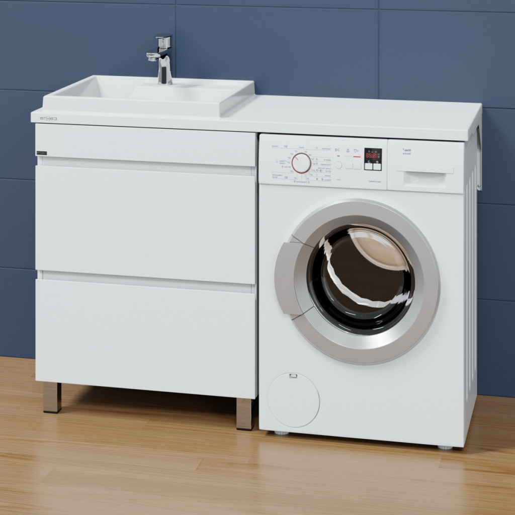 Купить «Тумба Марс 68 напольный 2 ящика c раковиной над стиральной машиной Юпитер 130 L» недорого легко, фото, видео, доставка. Для заказа просто позвоните по телефону