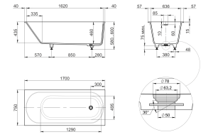Длина акриловой ванны: 170